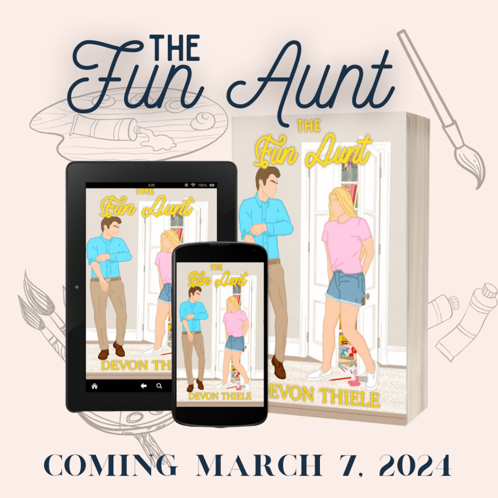 Until her eldest niece requests her assistance with the Senior Class Summer of Service. Now this fun aunt must dust off those creative skills and work with the serious(ly good-looking) Vice Principal, Reid Warner, who is determined the shut the entire program down to cut costs. They form an unlikely team to navigate the summer’s activities and support the senior class. Once he discovers her past as an artist, Reid encourages Evie to open herself back up to her muse. Will she find her creativity again? Or will she lose her heart in the process?
