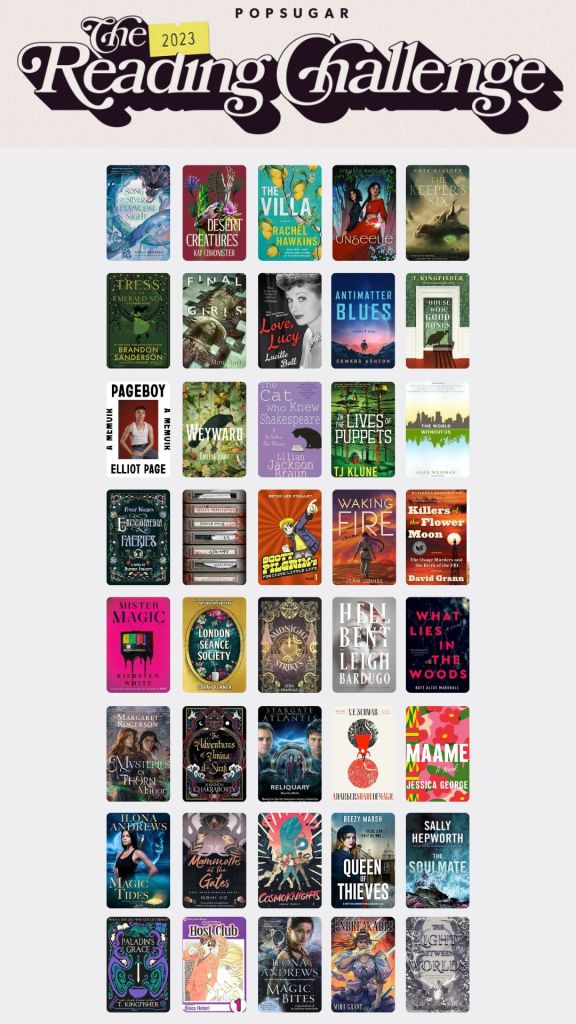 Read below for the written list of my 2023 PopSugar Reading Challenge!