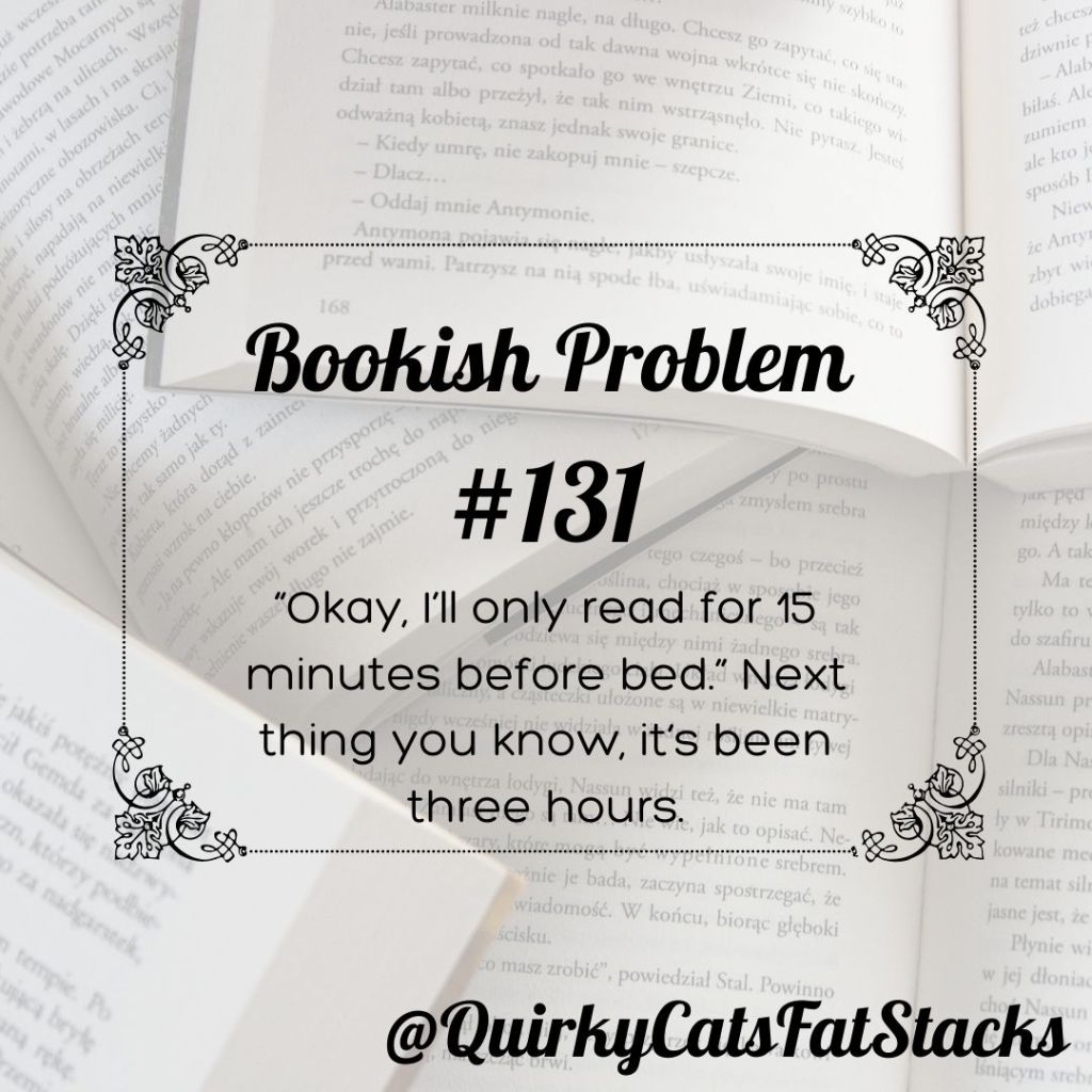 Bookish Problem #131: “Okay, I’ll only read for 15 minutes before bed.” Next thing you know, it’s been three hours.