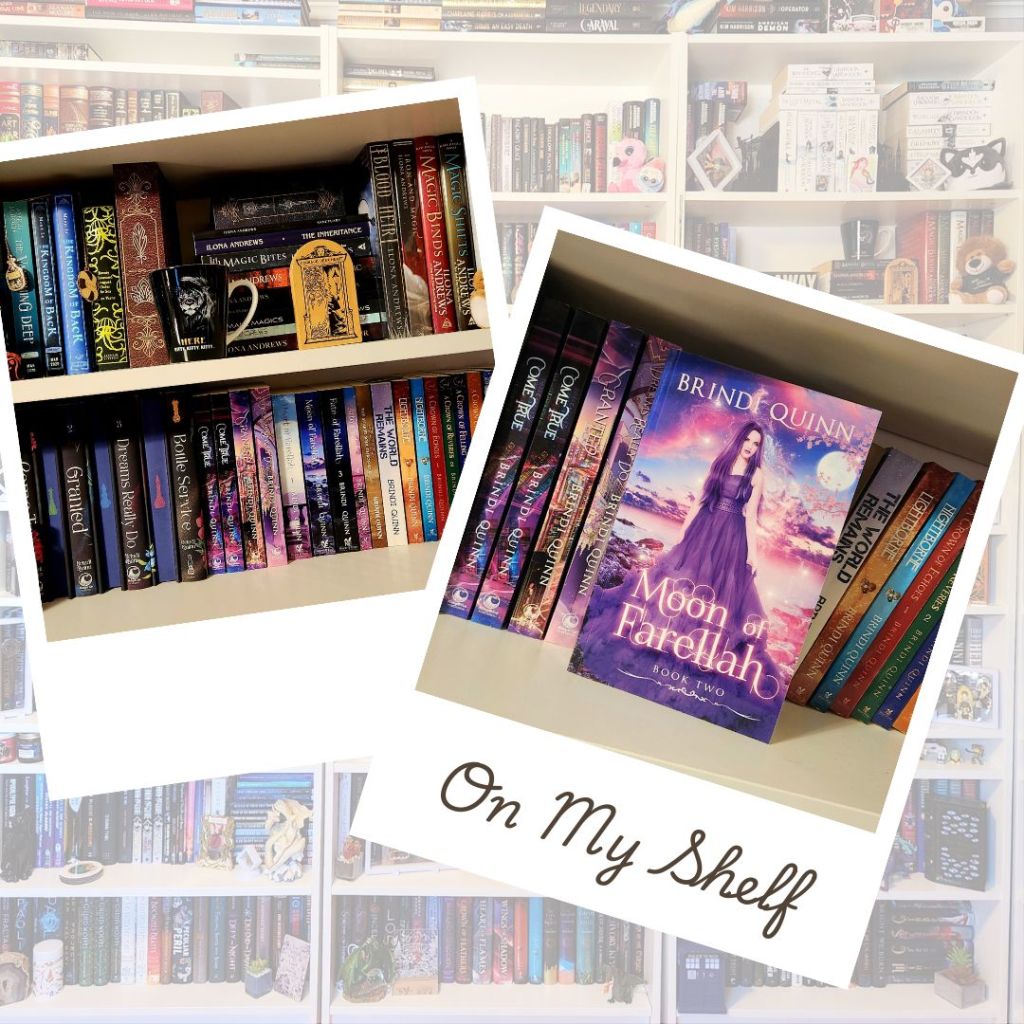 This particular roll brings us to one of my favorite shelves: Brindi Quinn’s books! I have a full shelf of her books, though I’m ashamed to admit that I haven’t successfully read through everything (yet! It’s on my list!).
